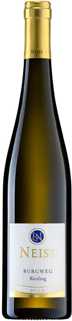 Neiss, Burgweg, Riesling — выдающееся белое сухое вино из винограда сорта Рислинг с виноградника "Бургвег", соответствующего уровню Grosse Lage по классификации ассоциации немецких виноделов. В Германии Рислинг занимает более 20% посевных площадей, в Пфальце под виноградники с этим сортом отведено почти 5000 гектаров. Поскольку аромат сорта четко отражает почву и климат, Рислинг представляет собой ярко выраженное терруарное вино. Как медленно созревающий сорт с выраженным кисловатым характером, Рислинг идеально подходит для прохладного климата, преобладающего в Северном Пфальце с его поздним осенним солнцем. "Бургвег", расположенный под прикрытием старого карьера, имеет уникальный микроклимат. Благодаря безветренной высоте, теплоаккумулирующей почве и большому содержанию известняка здесь созданы отличные условия для выращивания Рислинга.