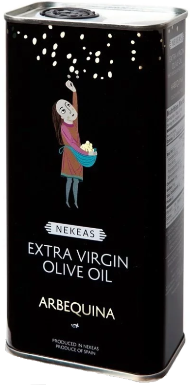 Nekeas, Arbequina, Extra Virgin Olive Oil - нерафинированное оливковое масло первого холодного отжима высочайшего качества. Для изготовления масла используют оливки сорта Арбекина раннего сбора урожая (начальная стадия созревания) при низкой кислотности 0,1-0,2%, благодаря чему сохраняются полезные и лечебные свойства плодов. Оливки выращены в долине Некеас, в регионе Наварра, на высоте 500 м над уровнем моря. Это одно из лучших мест для производства оливкового масла высшего качества. В долине наблюдается умеренный климат с жарким сухим летом. Почвы состоят из красной и белой глины.