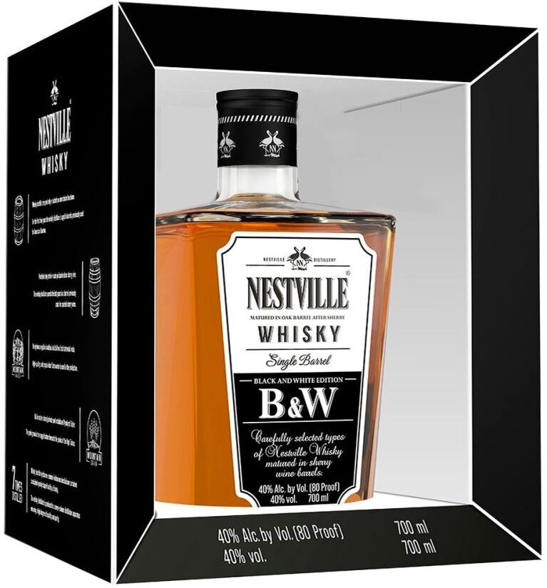 Nestville, Black & White — специальный выпуск Single Barrel. Первые годы виски выдерживают в бочках из-под американского бурбона, а последние годы — в бочках из-под испанского хереса. Отсюда и аббревиатура B&W, которая расшифровывается как Bourbon & Wine. Зародилась традиция выдерживать виски в бочках из-под хереса в Англии, где большой популярностью пользовался испанский херес. Его закупали в бочках. Когда бочки опустели, англичанам они оказались не нужны, и они сожгли их, что привлекло внимание одного производителя виски. Мечтая о дешевых бочках, он оставил несколько себе. Дистиллятор был приятно удивлен результатом, и это положило начало традиции выдерживать виски в бочках из-под хереса. Такие бочки придают виски великолепный, неповторимый оттенок коричневого цвета и восхитительный вкус свежих спелых фруктов.