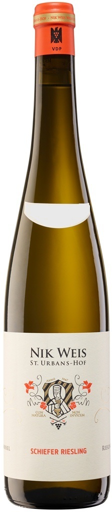 Nik Weis, Schiefer Riesling — восхитительный полусухой Рислинг, отражающий типичный мозельский терруар, который придает ему несравненную пикантную соленую минеральность, прекрасно сбалансированную с нежной остаточной сладостью и сочной фруктовостью. Виноград для его изготовления выращивается на сланцевых почвах в Меринге на Мозеле и Вильтингене на Сааре. Возраст лоз колеблется от 40 до 60 лет. После ферментации с натуральными дрожжами вино выдерживается в стальных емкостях. Потенциал хранения "Шифер" Рислинг составляет 7-9 лет.