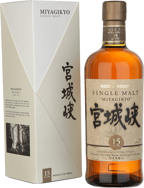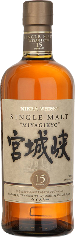 Miyagikyo, 15 Years Old — удивительный односолодовый виски, который выпускается на винокурне "Мийягикио" в северной части Японии, в районе города Сендай. Виски выдерживается в дубовых бочках из-под хереса в течение 15 лет. Виски обладает золотистым цветом с янтарными оттенками, сложным цветочно-фруктовым ароматом с нотами хереса, меда и орехов. Вкус "Мийягикио" мягкий и гладкий, очаровывает нотами меда, хереса, мускатного ореха и прекрасно сбалансированным продолжительным фруктовым послевкусием.