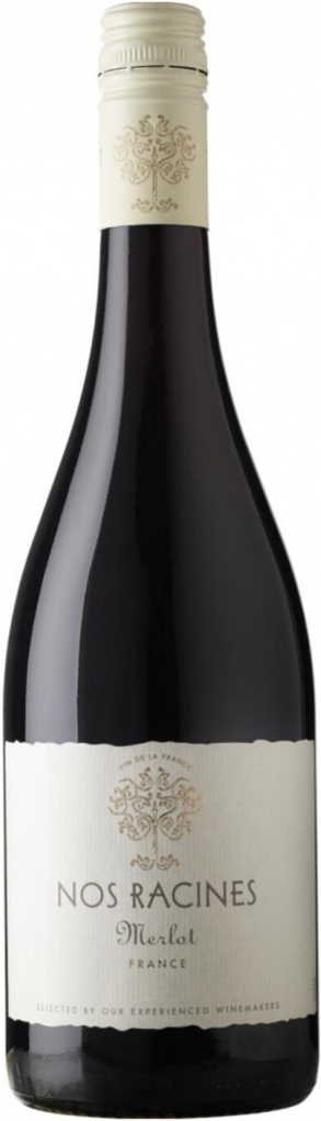 Nos Racines, Merlot — красное вино из винограда сорта Мерло, выращенного на юге Франции, на обширных виноградниках региона Лангедок-Руссильон. Оно создается на заводе компании ZGM, имеющей виноградники и винодельни по всему миру, в том числе и во Франции. Вино получило серебряную медаль на конкурсе «Mundus Vini» в 2015 году.