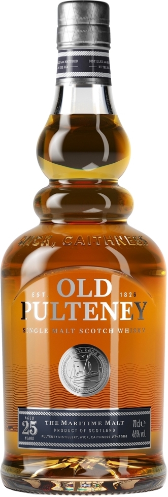 Односолодовый виски "Old Pulteney" 25 Years Old, выдержка которого составляет 25 лет, отличается мягкостью, округлостью и насыщенностью вкуса и аромата. Первые 22 года виски выдерживался в бочках из-под бурбона из американского дуба. Затем виски помещается на три года в бочки из испанского дуба, в которых ранее выдерживался херес олоросо. В виски сочетаются пряные и сладковатые оттенки, плотная текстура и солоноватые нотки морского бриза.