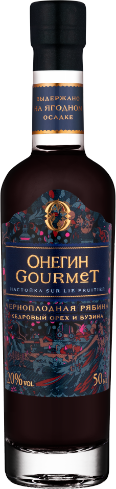 Онегин, "Гурмэ" Черноплодная Рябина, Кедровый Орех и Бузина — десертная настойка, в производстве которой используется черноплодная рябина, бузина и кедровый орех. Настойка изготавливается из натуральных ингредиентов методом "sur lie fruitier" (выдержка на ягодном осадке). Настойку рекомендуется подавать с колотым льдом в широком бокале.