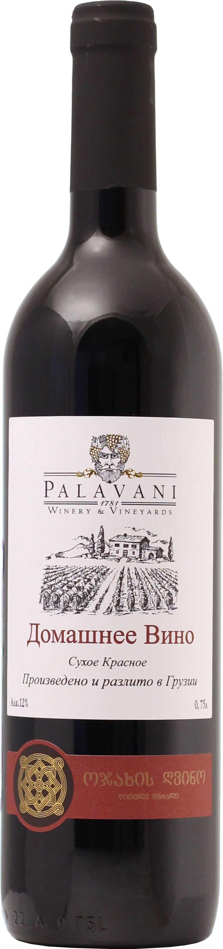 Сбалансированное красное сухое вино Палавани, Домашнее Вино изготовлено из винограда сорта Саперави по традиционной технологии создания красных вин. Богатый ягодный аромат и бархатистый вкус вина делают его незаменимым спутником для большого количества мясных блюд. Вино раскроет всю полноту своего букета в паре с блюдами из красного мяса, домашней птицы или дичи. Попробуйте насладиться вином в компании нарезки из колбас и сыров, чтобы открыть новые, неизведанные грани вкуса. Вино рекомендовано слегка охладить перед употреблением.