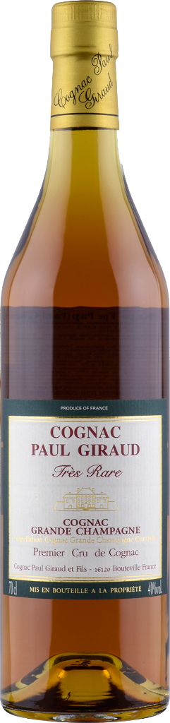 Спирты для коньяка Paul Giraud, "Tres Rare" Grande Champagne Premier Cru выдерживались в течение 40 лет в бочках из лимузенского дуба в погребах Дома Поль Жиро. Это элитный напиток для настоящих ценителей, его отличает очень сложный вкус и богатый аромат.