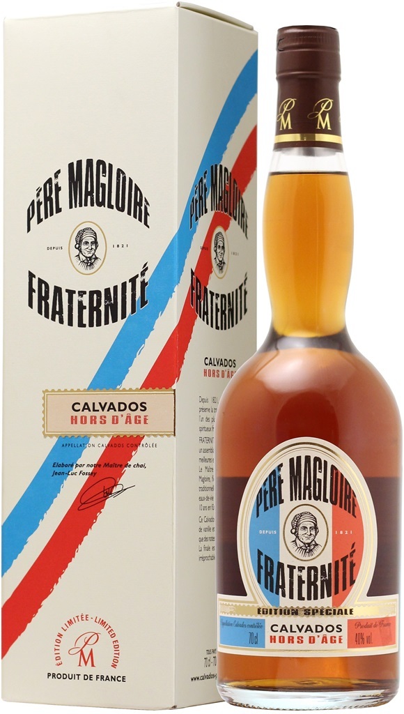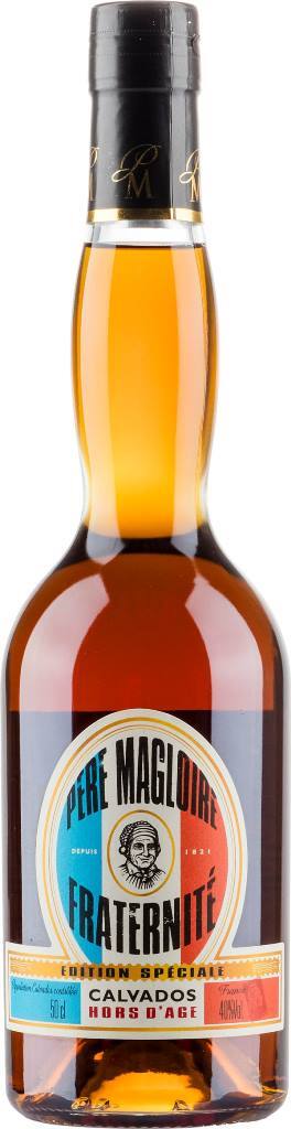 Pere Magloire, Fraternite, Hors d'Age – напиток, который традиционно производится на северо-западе Франции в Нормандии, получаемый в результате однократной дистилляции яблочного сидра и дальнейшей выдержки спиртов в дубовых бочках. Кальвадос производится из отборных яблок, выращенных в Нормандии, путём однократной непрерывной дистилляции сидра. Одинарная дистилляция в колонне – более мягкая и придаёт Кальвадосу яркий и насыщенный аромат яблок. Выдержка: 10 лет в дубовых бочках.