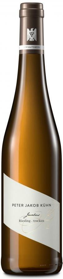 Peter Jakob Kuhn, Jacobus, Riesling Trocken — элегантное белое сухое вино из региона Рейнгау, в честь отца-основателя компании, Якоба. Сбор урожая проводится вручную, на винодельне плоды подвергаются прессованию с последующей ферментацией с натуральными дрожжами со строгим температурным контролем. Выдерживается вино в стальных емкостях и деревянных бочках до конца марта следующего года. "Якобус" Рислинг рекомендовано употреблять в сочетании с белым мясом, рыбой, легкими блюдами, закусками, фруктами и сырами.