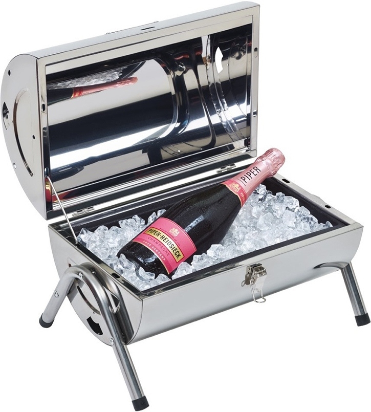 Эксклюзивная подарочная коробка "Барбекю" выполнена из высококачественной нержавеющей стали и может использоваться в качестве емкости для льда или же как гриль для приготовления барбекю.