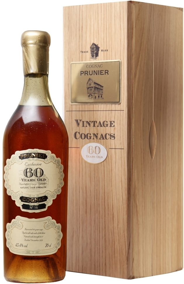 Prunier, 60 Years Old, Petite Champagne — изысканный, мягкий коньяк из коньячных спиртов, изготовленных из винограда, собранного в регионе Пти Шампань и выдержанных минимум 60 лет в дубовых бочках в собственных старинных погребах Дома Прунье, расположенных в самом сердце легендарного города Коньяк. Благодаря мягкому вкусу с приятным, согревающим послевкусием коньяк рекомендуется подавать на стол в качестве классического дижестива, в паре с кубинской сигарой и ароматным кофе.
