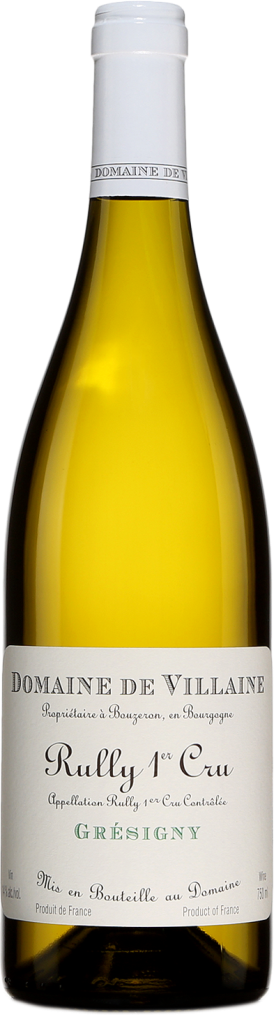 Domaine de Villaine, Rully 1er Cru, Gresigny — белое сухое вино, созданное из винограда сорта Шардоне. После прессования сусло ферментируется в резервуарах из нержавеющей стали. Винификация предполагает яблочно-молочное брожение, дважды в месяц осуществляется батонаж. Выдерживается вино в дубовых бочках, 25% из которых новые. Это вино поистине удивительное. Первые приятные впечатления, несомненно, производит цвет напитка — чистый, очень мягкого желтого оттенка с серебристыми бликами на кромке. Вкус и аромат объединяет наличие цитрусовых ноток, которые наделяют вино небывалой свежестью.