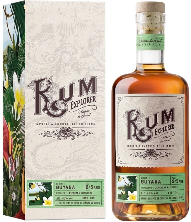 Explorer, Guyana 2 Ans — фруктовый, ароматный ром из Гайаны. Дистилляция осуществляется на знаменитой дистиллерии Demerara Distillers, которая ведет свою историю с 1670 года, когда на каждой сахарной плантации был свой ром, а группа производителей сахарного тростника сформировала экспортный кооператив. После многих лет консолидации и слияний сегодня осталась только одна винокурня в Даймонде на восточном берегу Демерара. Винокурня славится своими мощными и высококонцентрированными ромами, которые дистиллируются в небольшом перегонном кубе, специально предназначенном для этой цели. После 2-летней выдержки в жарком климате Гайаны ром несколько месяцев дозревает в подвалах Chateau du Breuil. Для выдержки используют бочки из-под хереса Олоросо, благодаря чему ром приобретает гармонию, приятную округлость и естественную сладость, становится более шелковистым.