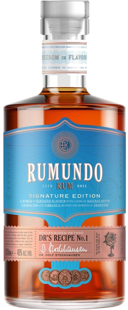 Rumundo, Signature Edition — золотистый ром, который производится из сахарного тростника из Ямайки и Доминиканы по уникальной технологии Штокхаузена. Изобретатель, доктор Дольф Штокхаузен, именем которого назван метод, полностью изменил процесс старения рома и виски, и сократил его на годы. Его идея основана на физическом законе, имитирующем выдержку в бочке. В 2017 году, после многих лет исследований, Дольф Штокхаузен разработал устойчивый процесс и добился мировой сенсации своим изобретением. Данный метод предусматривает распил бочки на щепки с последующим добавлением этих щепок в дистиллят. Такой способ позволяет древесине контактировать с дистиллятом и насыщать ром в 6 раз быстрее по сравнению с традиционной выдержкой в бочках. Ром рекомендуется пить с водой, соками, льдом или в составе различных коктейлей.