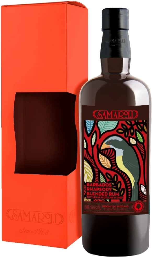 Samaroli, Barbados Rum Rhapsody Blended дистиллирован на винокурне Single Origin Barbados. Бутылирован в Шотландии в 2023. Мощный, таинственный, соблазнительный вкус обладают мистической магией. Не менее 7 лет выдержки в Шотландии придают ему уникальность. Он не похож на другие ромы Барбадоса, как народный латиноамериканский танец не похож на увертюру Россини. Когда осуществлялся этот благородный купаж, мы чувствовали себя древними алхимиками, готовившими волшебный эликсир. Широкий спектр его вкусовых нюансов завораживает с первого глотка.