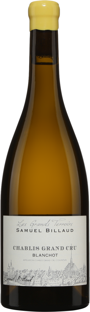 Samuel Billaud, Chablis Grand Cru "Blanchot" — изысканное, мягкое Шабли из выращенного в одноименном винограднике сорта Шардоне. Участок "Бланшо" в хозяйстве Домен Сервин имеет юго-восточную диспозицию, благодаря чему в утренние часы лозы получают достаточно солнечных лучей для оптимального созревания. Ягоды этого виноградника известны своим элегантным характером. Богатые мергелем и известняковой глиной почвы дают винам хорошую минеральность и утонченность, подчеркивая особенности терруара.