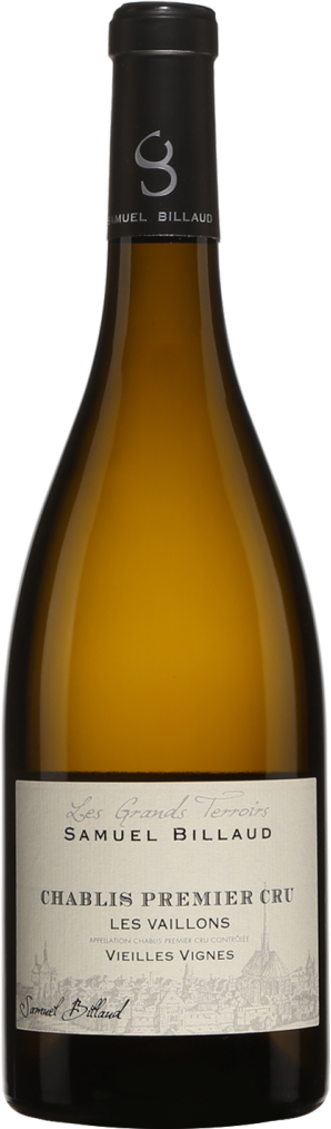 Samuel Billaud, Chablis Premier Cru "Les Vaillons" Vieilles Vignes — превосходное, интенсивное вино, обладающее прекрасным ощущением энергии, напряженности и минеральности. Шардоне для изготовления этого вина собирается с лоз возрастом около 70 лет с органического виноградника "Вайон" класса Премье Крю. Ферментация и выдержка вина производится исключительно в резервуарах из нержавеющей стали.