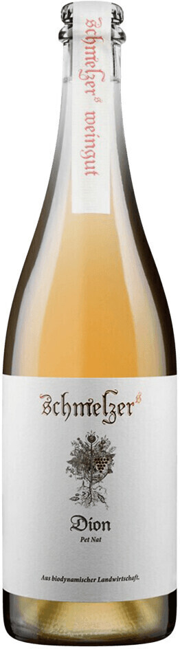 Schmelzer's, Dion Pet Nat — белое игристое вино, произведенное натуральным методом самопроизвольного брожения на диких дрожжах. Этот метод до сих пор не особо жалуется официальными винными регуляторами, однако есть целые регионы, специализирующиеся на производстве петнатов. Виноград мацерируется и ферментируется в стальных чанах, но еще до окончания брожения разливается в бутылки, где процесс ферментации завершается естественным путем. Из-за особенностей винификации петнат имеет немного мутный цвет, так как не проходит фильтрацию перед бутилированием и не очищается от осадка, как шампанское.