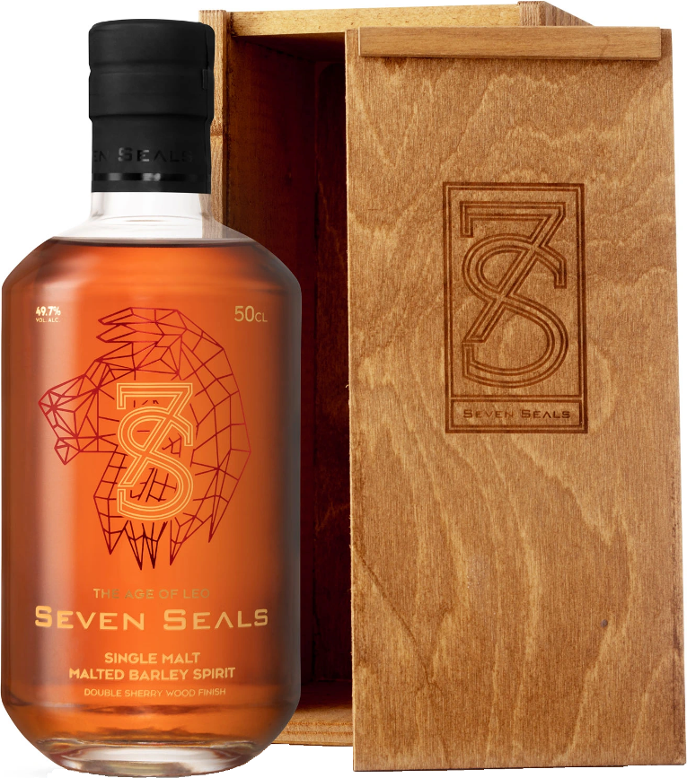 Seven Seals, Zodiac, The Age of Leo, Single Malt — односолодовый виски, вдохновлённый знаком зодиака Лев, который является настоящим победителем. Он кажется самоуверенным, но в то же время довольно милым. Он решительный, общительный, с большим сердцем и огнем в душе. Сладкий и в то же время мощный виски — невозможно? Зодиакальный Лев "Севен Силс" впечатляюще доказывает, что это не противоречия, а взаимодополняющие характеристики. Благодаря выдержке в бочках трех типов в течение не менее 3-х лет, а затем дозревания в бочках из-под хереса Педро Хименес, "Севен Силс" Зодиак Зе Эйдж оф Лео является настоящей хересной бомбой!