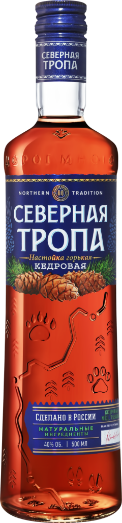 Северная тропа, Кедровая — горькая настойка, изготовленная на современном оборудовании завода "Бальзам". Настойка изготавливается с добавлением кедровых орехов, собранных в Сибири, путем купажирования с последующей выдержкой в в специальных эмалированных винно-коньячных емкостях при строго контролируемой температуре 12°С. Настойку можно подавать в чистом виде в качестве аперитива или дижестива. При желании ее можно дополнить холодными закусками и мясными блюдами.