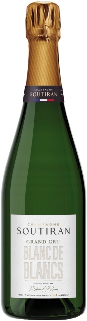Soutiran, Blanc de Blancs Grand Cru, Brut — элегантное шампанское, изготовленное в классическом французском стиле "blanc de blancs". "Белое из белого" — поэтическое название процесса производства шампанского только из сорта Шардоне. Урожай собирают вручную в течение примерно 10 дней. После прессования с использованием мембранного пресса полученное сусло ферментируется в стальных чанах. По завершении яблочно-молочного брожения базовое вино проходит холодную стабилизацию и фильтрацию глиняными фильтрами. После бутилирования кюве выдерживают на осадке в подвалах винодельни в течение 9 лет. После дегоржажа (извлечение осадка из бутылки) добавляется дозировочный ликер, количество которого устанавливается после ряда испытаний в лаборатории и слепых дегустаций. Гармония и баланс — основные элементы, к которым стремится дегустационная комиссия. Затем кюве выдерживают в среднем еще 6 месяцев до реализации, этот период обеспечивает однородность шампанского. Потенциал хранения Блан де Блан Гран Крю Брют составляет не менее 15 лет.