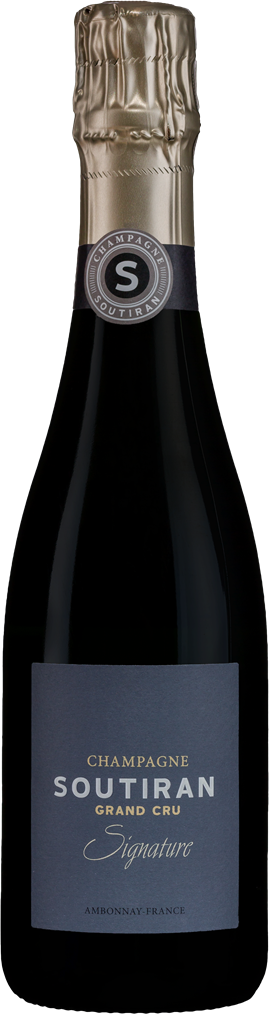 Soutiran, "Signature" Grand Cru Brut, Champagne — чистое и свежее шампанское, изготовленное из винограда сортов Шардоне и Пино Нуар, которые выращиваются на виноградниках компании в деревеньке Ambonnay, расположенной в самом сердце Монтань де Реймс. Урожай собирают вручную в течение примерно 10 дней. После прессования с использованием мембранного пресса полученное сусло ферментируется в стальных чанах, а малая часть (10%) — в большой дубовой бочке. Все вина проходят этап яблочно-молочного брожения. Вина, прошедшие ферментацию в бочке, выдерживаются на осадке до смешивания. Перемешивание осадка производится в течение определенного времени в зависимости от профиля года. Перед розливом базовое вино проходит холодную стабилизацию и фильтрацию. После бутилирования кюве выдерживают на осадке в подвалах винодельни в течение 3 лет. После дегоржажа (извлечение осадка из бутылки) добавляется дозировочный ликер, количество которого устанавливается после ряда испытаний в лаборатории и слепых дегустаций. Гармония и баланс — основные элементы, к которым стремится дегустационная комиссия.