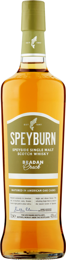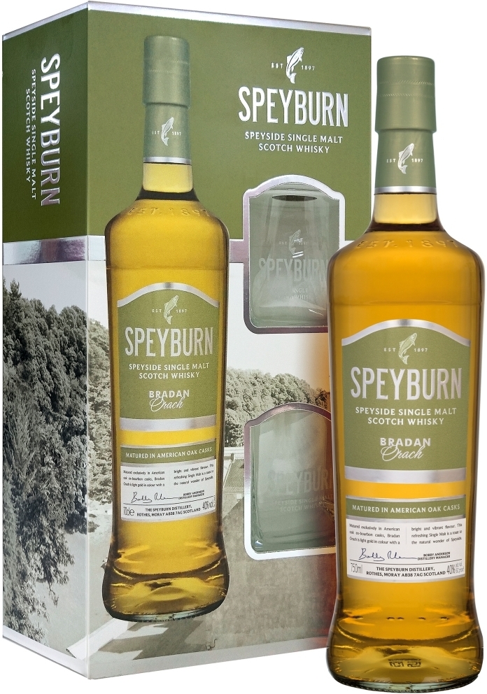 Speyburn, "Bradan Orach" — это классический шотландский виски с мягким вкусом и продолжительным послевкусием. С гэльского языка название виски переводится как "Золотой лосось". Виски "Брадан Орах" выдерживается исключительно в бочках из-под бурбона, благодаря чему во вкусе напитка присутствуют медовые, ванильные и пряные тона.