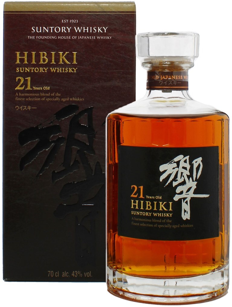 Виски Hibiki 21 Years Old не менее 21 года выдерживается в вишневых бочках на винокурне Yamazaki. После этого он купажируется с зерновым виски аналогичной выдержки. Столь роскошное сочетание возможно только благодаря огромному выбору виски в подвалах Suntory. Его этикетка выполнена из традиционной японской бумаги ручной выделки (васи). Бутылки имеет 24 грани, они символизируют сутки и длительную выдержку. Hibiki 21 Years Old — это виски высочайшего качества, он представлен в элегантной упаковке и может стать прекрасным подарком!