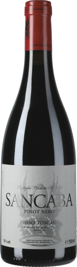 Sancaba — новинка от легендарного винодела из Тосканы Андреа Франкетти. Вино изготовлено из винограда сорта Пино Неро, выращенного на холмах Сан-Кашьяно дей Баньи (название вина "Санкаба" является аббревиатурой названия местности), на юге провинции Сиена. Виноградники расположены на высоте 650 метров над уровнем моря. Особенности терруара — глинисто-известняковые почвы с высоким содержанием сланца, прекрасная естественная вентиляция, суточные колебания температур в период вегетации — идеально подходят для выращивания Пино Неро. Виноградники окружены дубовыми лесами, соседство с которыми придает Пино Неро особый аромат с нотками дикой вишни, трюфеля и подлеска. Возраст виноградных лоз колеблется от 4 до 10 лет. Лозы обрабатываются медью и серой в соответствии с органическими принципами. Ферментация протекает в течение 10 дней в чанах из нержавеющей стали и деревянных емкостях. Выдерживалось вино 6 месяцев в больших деревянных чанах, а затем 14 месяцев в бетонных емкостях.