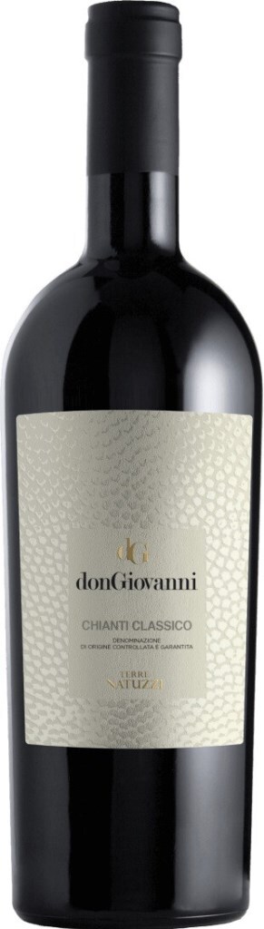Terre Natuzzi, donGiovanni, Chianti Classico — изящное красное полусухое вино из винограда сортов Санджовезе, Каберне Совиньон и Канайоло, который выращивается в Греве ин Кьянти. Греве — сердце Кьянти, холмистой области центральной Тосканы. Виноградники расположены на почвах из кварцитного серо-голубого песчаника, с прослойками песка и известняка. Благодаря такому терруару и долгому вегетационному циклу вина получаются элегантные и очень ароматные. Собранный в момент оптимальной зрелости виноград подвергается деликатному дроблению и мацерации в течение 1-2 недель, что способствует извлечению цвета и других полифенольных веществ. Выдерживается вино 9 месяцев в больших и маленьких бочках.