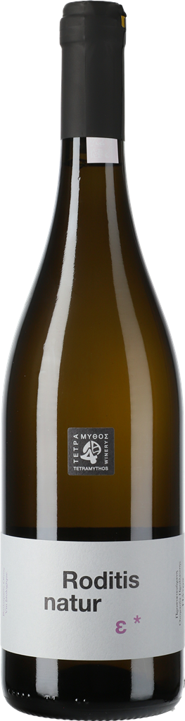 Tetramythos, Roditis Natur — органическое белое сухое вино из винограда сорта Родитис, который произрастает на виноградниках в северной части Греции на залитых солнцем пологих склонах горного хребта Пелла. Почвы — известково-суглинистые, хорошо дренируемые.