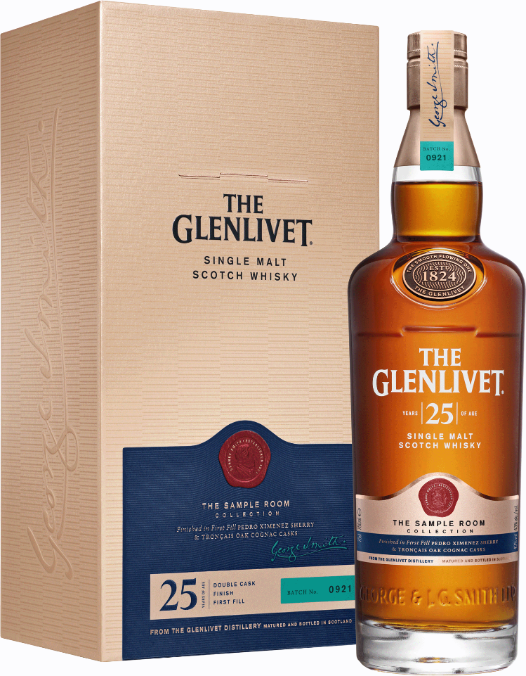 The Glenlivet, 25 Years Old — элегантный, шелковистый, благородный, супер-премиальный виски, который производится в очень ограниченном количестве. Завершающая стадия выдержки виски в течение несольких лет производится во вручную отобранных бочках из-под хереса. Дубовые баррики, в которых ранее выдерживался сухой херес Олоросо, обогащают виски нотами поджаренных лесных орехов и коричневых сладких специй, а также придают вкусу насыщенность и экспрессивность. В процессе старения каждая бочка находится под особым контролем на предмет соответствия требуемым изысканным хересным оттенкам аромата, благодаря которым "Гленливет" 25-летний обрел мировое признание.