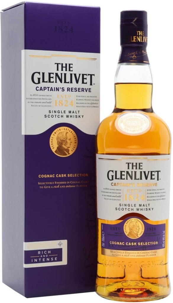 The Glenlivet, Captain's Reserve — односолодовый шотландский виски, прошедший выдержку сначала в бочках из-под хереса и из-под бурбона, а затем — в бочках из-под коньяка. В результате такой выдержки вкус и аромат виски наполнился пряными и медовыми оттенками. Виски является идеальным дижестивом: в чистом виде или со льдом. Его можно подать к легким блюдам из лосося.