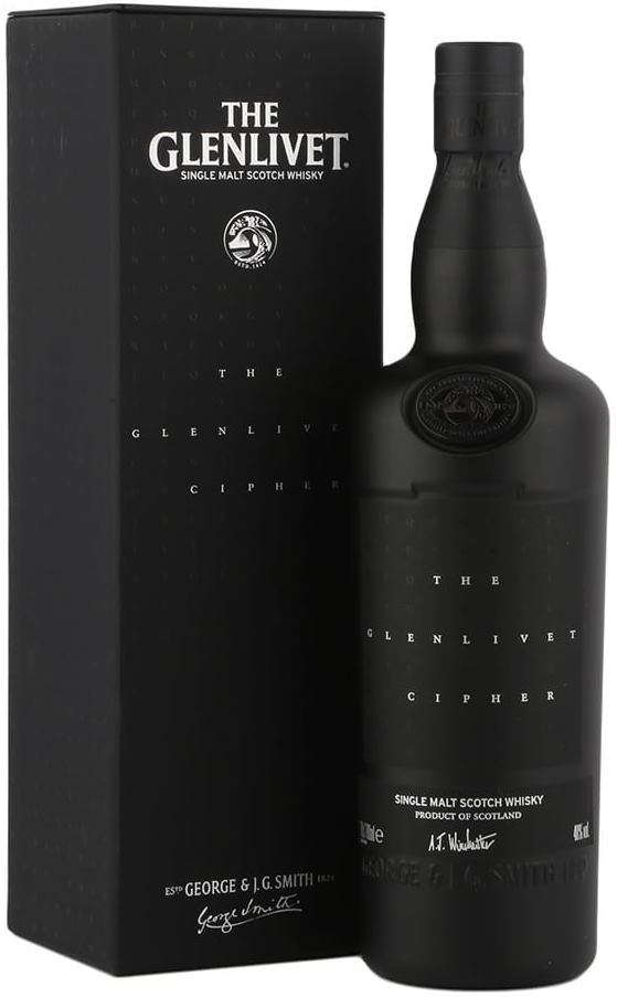 The Glenlivet "Cipher" — уникальный релиз односолодового виски, раскрывающий тайны шифра. Выдержка виски проходила в бочках из американского дуба первого заполнения и в бочках из-под хереса, которые ранее никогда не использовались в портфеле Гленливет. Непрозрачная бутылка матового черного цвета и коробка в тон добавляют загадочности данному напитку.