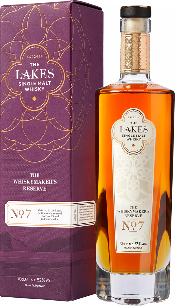 The Lakes, The Whiskymaker's Reserve, No.7 Single Malt — это завершение серии односолодовых виски от винокурни The Lakes. Производитель описывает "резервную" линейку, как исследование разных технологий, вкусовых палитр и букетов, цель которого — создание индивидуального фирменного стиля. И "Зе Вискимейкерс Резерв" №7 действительно выглядит уникально. У него запоминающийся сливочный вкус фруктов и сладостей, дополненный нотами специй и шоколада. Его насыщенный аромат с тонами дерева, жареных орехов и специй никого не оставит равнодушным. Он выдерживался 3 года. Для этого использовались бочки из-под красного вина и хереса, и именно они придали виски такой насыщенный фруктовый вкус. Производитель обещает продолжить развивать свою технологию производства в будущей линейке напитков. Сейчас же мы можем просто насладиться результатом уже проделанной многолетней работы. Этот виски можно пить как в чистом виде так и добавив немного воды для лучшего раскрытия вкуса.