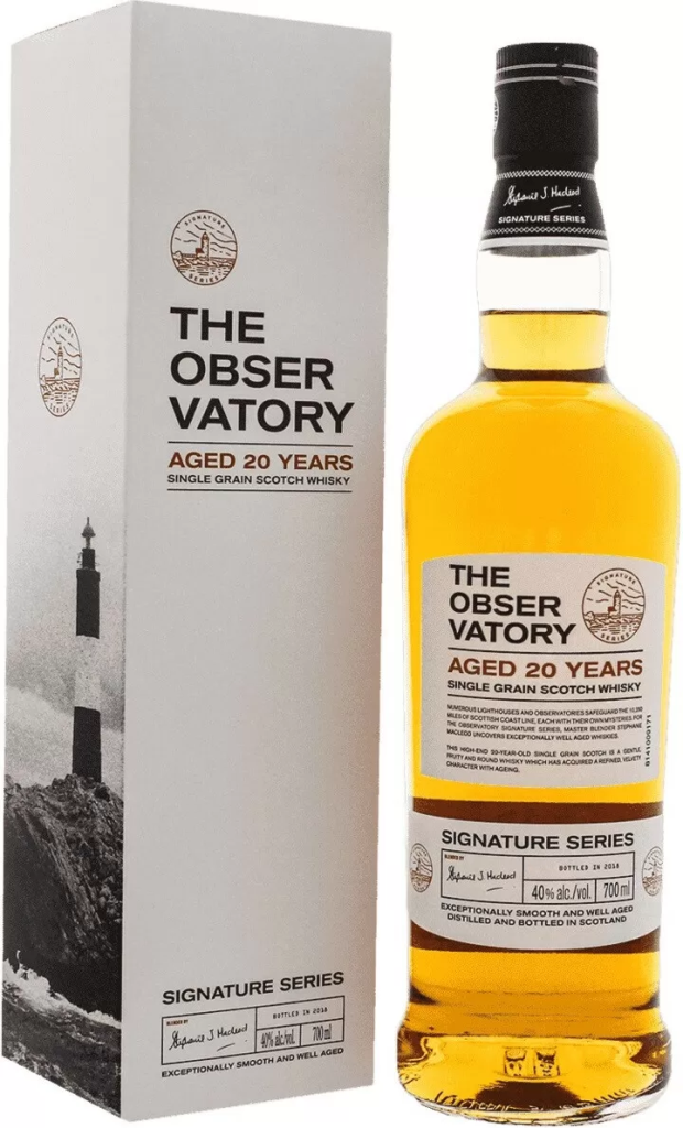 The Observatory, Single Grain, 20 Years Old — однозерновой шотландский виски, результат работы Стефани Маклауд, которая является мастер-блендером John Dewar and Sons (Bacardi Group). Она первая женщина, получившая награду "Whisky of the Year" в 2020 году, а также дважды титул "Master Blender of the Year". Своим названием виски отдает дань уважения многочисленным шотландским маякам вдоль береговой линии протяженностью более 16 км. Дистилляция проводилась на винокурне Macduff, которую можно найти в тени маяка Macduff. Виски выдерживался не менее 20 лет в бочках из-под бурбона и хереса, что наделило его богатым ароматом, и был бутилирован в 2018 году.
