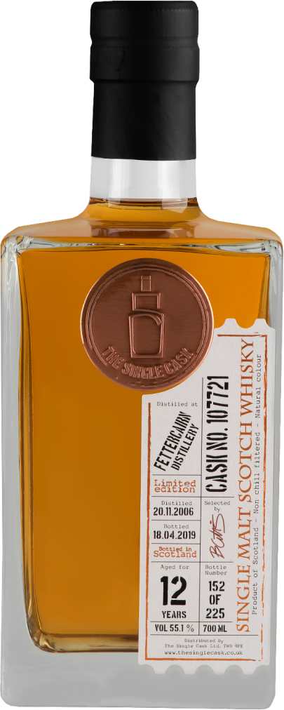 The Single Cask, "Fettercairn" Cask № 107721 12 Years Old — односолодовый шотландский виски, созданный из высококачественных спиртов, дистилированных на винокурне Феттеркерн 20 ноября 2006 года. Бочка под номером 107721 была выкуплена компанией Сингл Каск и после 12-летней выдержки виски был бутилирован 18 апреля 2019 года при бочковой крепости 55,7 °С. Всего было выпущено 225 бутылок виски, каждая бутылка пронумерована.