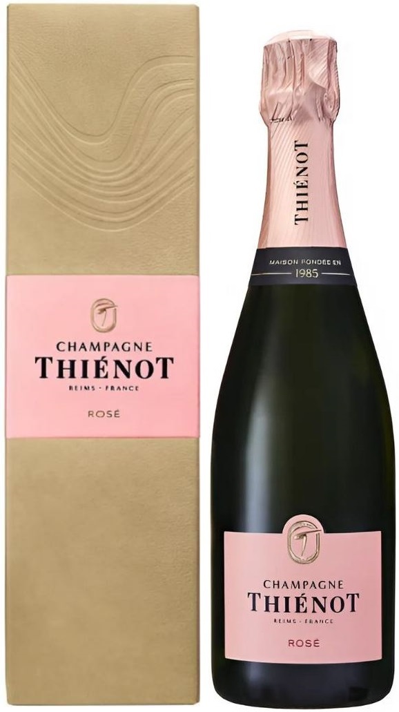 Thienot, Cuvee Rose Brut — благородное кюве дома Thienot, созданное из Шардоне, Пино Нуар и Пино Менье. Урожай собирается вручную в момент оптимальной спелости. Купаж состоит на 60% из базового урожая 2020 года и на 40% из резервных вин 2017–2019 годов. Вторичная ферментация проходит традиционным методом, обеспечивая изысканные пузырьки и структуру. Шампанское вино выдерживается на осадке не менее 3 лет. Дегоржаж выполняется фирменным методом "струйной обработки", который снижает уровень сульфитов и сохраняет свежесть.