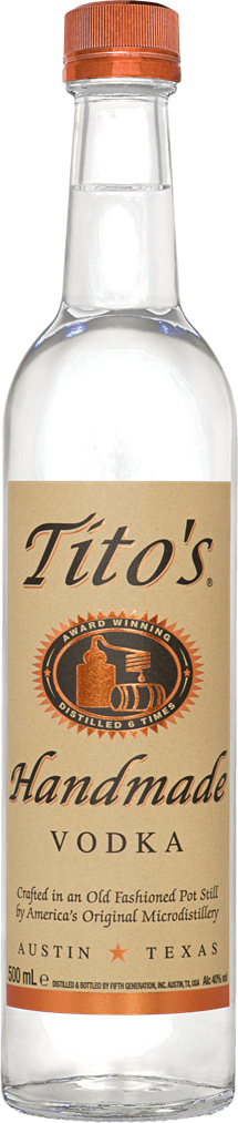 Tito's, Handmade Vodka — первая в мире крафтовая водка ручной работы, которая производится в Остине на одной из самых старых винокурен в Техасе. Она подвергается микроперегонке в старых кубах, как обычно это происходит с односолодовым шотландским виски или французским коньяком. Этот процесс довольно трудоемкий и длительный, но он позволяет получить водку, очищенную от фенолов, сложных эфиров, органических кислот. "Тито'с" изготавливается из кукурузы и не содержит глютена. Водка является отличным дижестивом, а также прекрасно подойдет для приготовления различных коктейлей.
