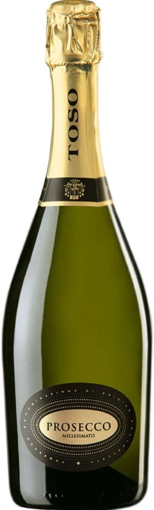 Toso, Prosecco DOC Millesimato — белое игристое вино, созданное в регионе Фриули-Венеция-Джулия, где традиционно выращивается виноград сорта Глера. Кроме этого сорта в купаж вина входит небольшая доля других белых сортов винограда (Шардоне, Пино Бьянко, Вердисо, Перера, Бьянкетта). Благодаря легкому, гармоничному вкусу Просекко — частый "гость" застолий, причем не только праздничных. Вино создают традиционным способом путем вторичной ферментации в герметичных автоклавах согласно методу Шарма. Производитель рекомендует подавать его в качестве аперитива, а также в сопровождении легких закусок, блюд из рыбы и овощей.