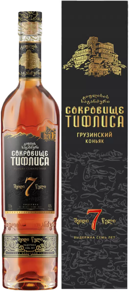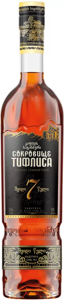 "Сокровище Тифлиса" 7-летний — благородный грузинский коньяк, изготовленный из высококачественных коньячных дистиллятов, выдержанных в дубовых бочках не менее 7 лет.