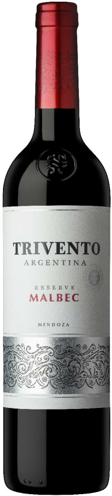 Trivento, Reserve, Malbec — аргентинское вино из винограда сорта Мальбек, вручную собранного в регионе Лухан де Куйо (60%) и долине Уко (40%) в апреле. На винодельне виноград подвергается ферментации в резервуарах из нержавеющей стали при температуре 26 ºC в течение 20 дней. Затем следуют 4-дневная постферментационная мацерация и натуральное яблочно-молочное брожение. Выдерживается вино на протяжении 6 месяцев в дубовых бочках.