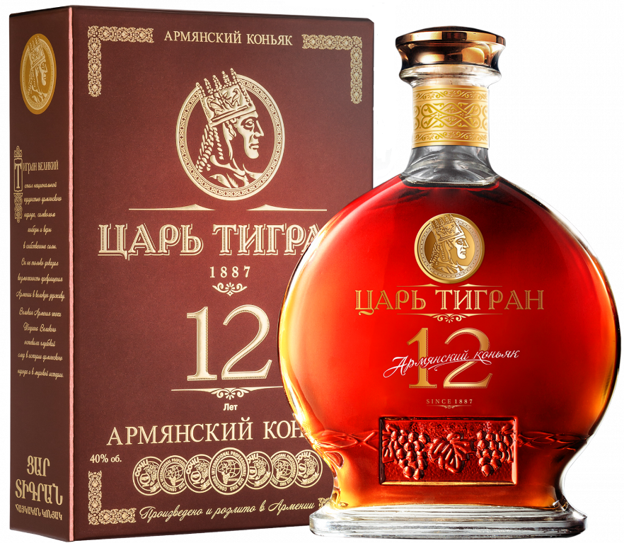 Коньяки "Царь Тигран" — это престижная серия, получившая свое название в честь легендарного царя Древней Армении Тиграна Великого, выдающегося правителя и завоевателя земель, жившего в I веке до н. э. Коньяки "Царь Тигран" создаются только из лучших отборных спиртов и стали настоящим эталоном армянского коньяка. Коньяк производится исключительно из местных сортов винограда — Воскеат, Гарандмак и других, растущих в Араратской долине. Виноград собирается в сентябре и октябре, после достижения полной зрелости. Виноградные спирты выдерживаются в бочках ручной работы из местного кавказского дуба. Коньяк "Царь Тигран" изготовлен по классической технологии из отборного винограда, собранного в Араратской долине, по рецептуре заслуженного винодела Армении и России Роберта Азаряна. Средний возраст коньячных спиртов составляет не менее 12 лет.