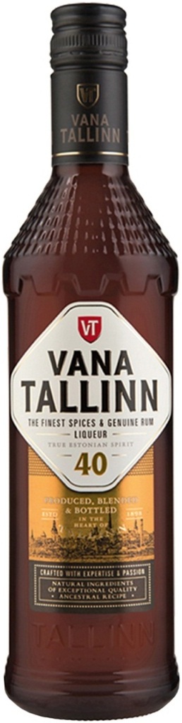Vana Tallinn, 40% — легендарный ликер, являющийся гордостью Эстонии. "Старый Таллинн" — удивительный эликсир, в глотке которого запечатлены настроение, мифы и загадки старого города. Он имеет завораживающую легенду происхождения. Согласно рассказам, рецепт данного эликсира, обладающего тонизирующими и бодрящими свойствами, был изобретен одним алхимиком в середине XII века в Таллинне. В своей тайной лаборатории он начал создавать уникальный напиток и, когда уже собрался добавить последний ингредиент, прогремел страшный взрыв. В результате катастрофы в лабораторию хлынула река. Просочившись сквозь стены помещения, вода в ней изменила свой цвет и вкус. Эта река и по сей день существует в Таллинне — горожане называют ее Огненной и считают, что вода из нее продлевает жизнь и дарит радость.