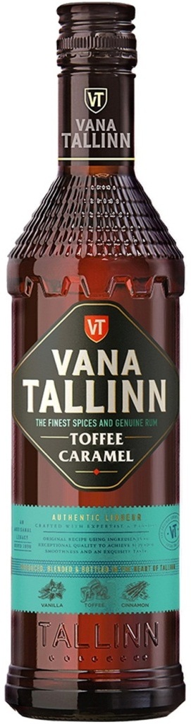 Vana Tallinn, Toffee Caramel — карамельный ликер в линейке именитого эстонского производителя. Его алкогольную основу составляет ямайский ром, а вкусо-ароматический букет складывается из купажа ириски тоффи, ванили и корицы. Легендарная бытылка из темного стекла повторяет архитектурные линии Старого Таллинна.