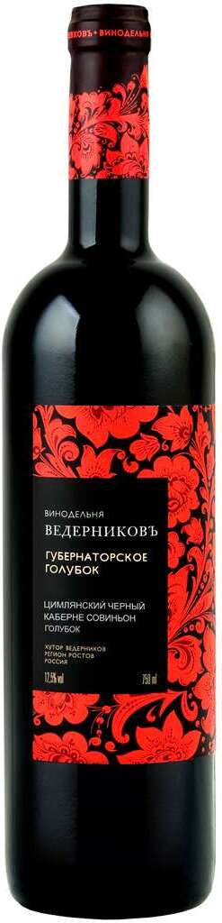 Красное сухое вино "Губернаторское" от винодельни Ведерниковъ изготовлено из винограда сортов Каберне Совиньон, Цимлянский черный и Голубок. Вино производят на модернизированных линиях, где используется гребнеотделитель, французская дробилка и криомацератор. Урожай собирают в ящики вместимостью 12-14 кг, после чего сортируют вручную. Виноград произрастает на участках со сниженной урожайностью — до 4 000 кг/га, что позволяет повысить концентрацию полезных веществ и обеспечивает оптимальное вызревание ягод. Вино "Губернаторское" Голубок рекомендуют пить сейчас или в течение последующих трех лет.