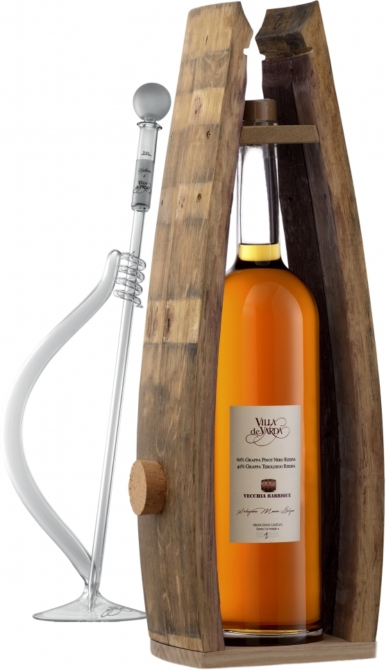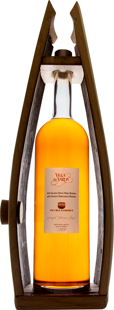 Villa de Varda, Grappa Riserva Vecchia Barrique Selezione "Mauro Dolzan" — роскошная граппа, покоряющая своими органолептическими характеристиками с первых секунд. В ее производстве используется виноград сортов Пино Неро и Терольдего, выращенный на виноградниках Трентино. Ферментация с выбранными дрожжами проводится со строгим температурным контролем без контакта с воздухом. Медленная дистилляция проводится в медных аламбиках, "голова" и "хвост" отсекается, используется только "сердце". Выдерживается граппа в бочках из французского дуба в течение длительного времени.