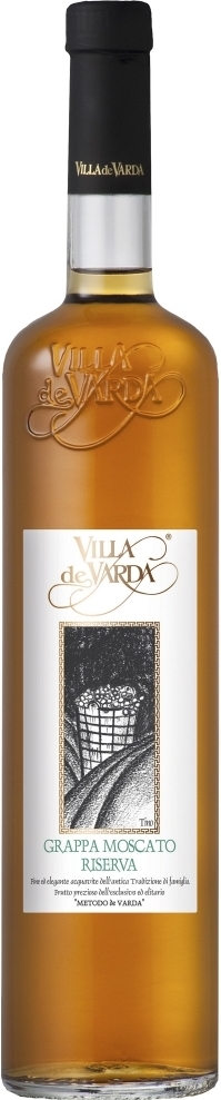 Villa de Varda, Moscato Riserva — богатая, изысканная, невероятно мягкая и гармоничная граппа, созданная из выжимок винограда сорта Москато Джалло (Мускат Желтый), собранного в лучших винодельческих районах. Дистилляция граппы проходит в особых, эксклюзивных медных аламбиках прерывистого цикла. В ходе этого процесса "голова" и "хвост" дистиллята отделяются, сохраняя тем самым чистое "сердце" граппы. Дистилляция протекает очень медленно, чтобы летучие компоненты, ответственные за ароматы граппы, правильно испарялись и конденсировались. Выдержка граппы Москато Ризерва производится в 225-литровых барриках средней прожарки из разных французских пород дерева. Этот длительный период проходит в темноте подвалов при контролируемой температуре. Срок и качество созревания граппы удостоверяется чиновником из Министерства.