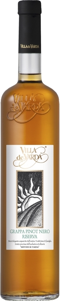 Villa de Varda, Pinot Nero Riserva — благородная, мягкая, сложная, теплая граппа, созданная из выжимок винограда сорта Пино Неро, собранного в винодельческих районах Ровере делла Луна и Пиана Роталиана. Дистилляция граппы проходит в особых, эксклюзивных медных аламбиках прерывистого цикла. В ходе этого процесса "голова" и "хвост" дистиллята отделяются, сохраняя тем самым чистое "сердце" граппы. Дистилляция протекает очень медленно, чтобы летучие компоненты, ответственные за ароматы граппы, правильно испарялись и конденсировались. Выдержка граппы Пино Неро Ризерва производится во французских барриках из разных ценных пород древесины. Этот длительный период проходит в темноте подвалов при контролируемой температуре. Срок и качество созревания граппы удостоверяется чиновником из Министерства.