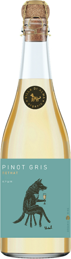 Villa di Alma, Pinot Gris, Petnat — освежающий игристый Пино Гри! Виноград для создания этого игристого вина выращивается на сертифицированных виноградниках между селами Растущее и Плодовое Бахчисарайского района Крыма. Посадки с лозами Пино Гри занимают 2,64 га. Рельеф долины характеризуется разнообразием, здесь низменности чередуются с холмами. Виноградники расположены на высоте 100-250 метров над уровнем моря и имеют различную экcпозицию. Лозы культивируются без применения пестицидов и синтетических удобрений.