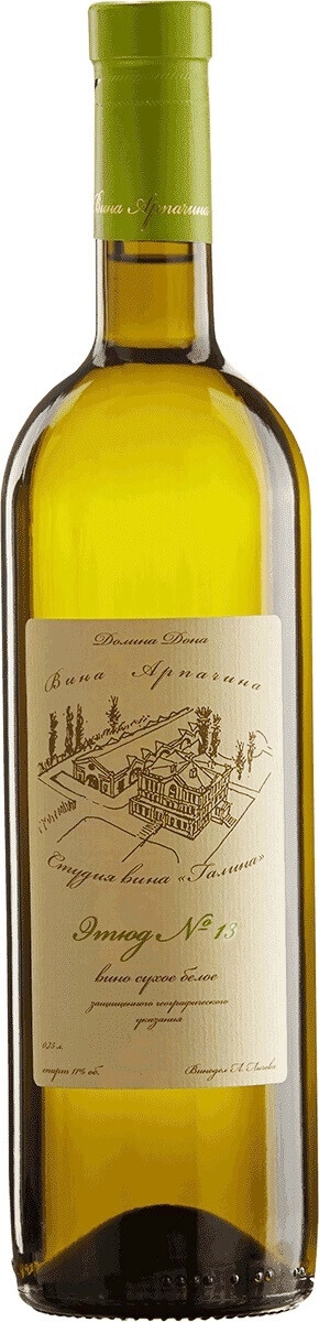 Вина Арпачина, Этюд №13 — белое сухое вино, в производстве которого используется виноград сортов Алиготе и Сибирьковый. По окончании сбора урожая плоды подвергаются традиционной ферментации в стальных резервуарах, проходящей со строгим температурным контролем. Вино хорошо сочетается с блюдами из морепродуктов, мяса домашней птицы, нежной телятины.
